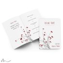 8 bis 16-seitiges Kirchenheft für die Taufe im Format 15 x 21 cm (aufgeklappt 30 x 21 cm). Im verspielten Stil mit Blumenstielen und roten Herzen als Blumenköpfen. Sowohl die Stängel als auch die Herzen können beliebig umgefärbt werden. Die Worte "Heilige Taufe", das Taufdatum und der Name des Babys machen die Vorderseite komplett. Dieses Kirchenheft zur Taufe ist für romantische Eltern genau das Richtige. Schwungvoll, verspielt und verliebt beschreibt die Designserie "Azurit" am besten.
