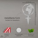 Cake Topper aus silber glitzerndem Acrylglas in Form einer Weltkugel. Im Format 10,5 x 14,5 cm (BXH), inkl. Spieß ca. 10,5 x 19,5 cm. Der Spieß des Cake Toppers ist ca. 5 cm lang. Wunderbar für alle reiselustigen Brautpaare und perfekt passend zu unserer Designserie "Reisepass Globus".