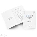 Gestaltet euer ganz persönliches Kirchenheft im Format DIN A5. Wir geben euch eine schöne Aufteilung mit Sprüchen und Ablauf vor, aber ihr könnt das Heft ganz an eure Wünsche anpassen.